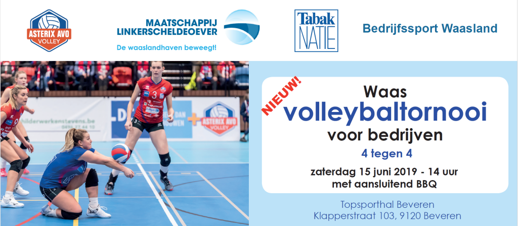 Samen met Asterix AVO Volley en Maatschappij Linkerscheldeoever (MLSO) organiseren we op zaterdag 15 juni 2019 ons eerste Waas volleytornooi voor bedrijven.